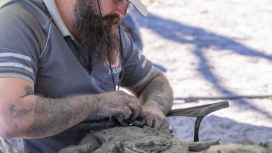 COAST ARTIST AND HIS DRIFTWOOD SCULPTURES