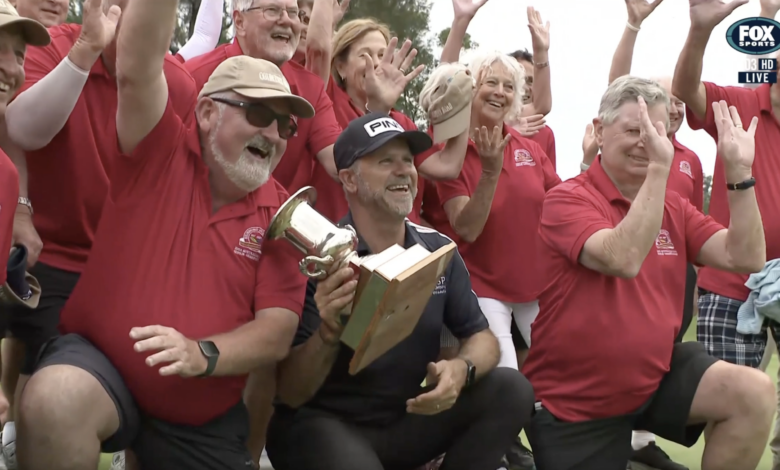 Former Central Coast golfer Andre Stolz has taken out the Australian Seniors Championship for the second time, with a superb five-stroke win at Richmond in Sydney.