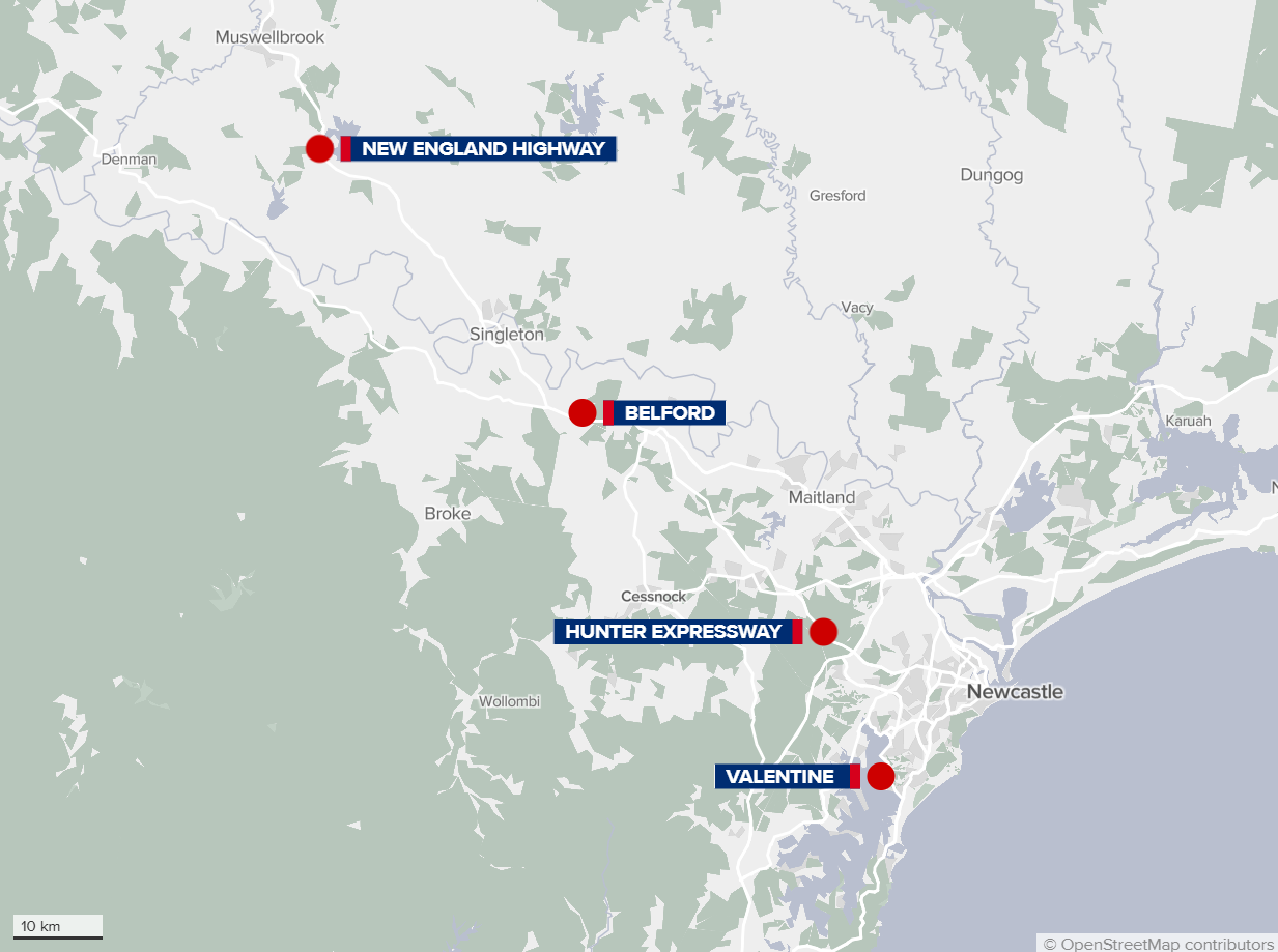 Road spikes were deployed twice in Belford and Muswellbrook.