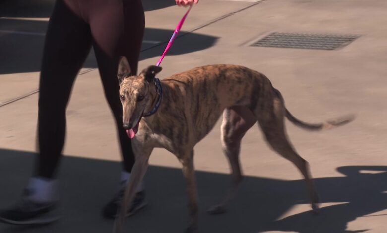 A dozen retired racing greyhounds ready to trade the track for a forever home.