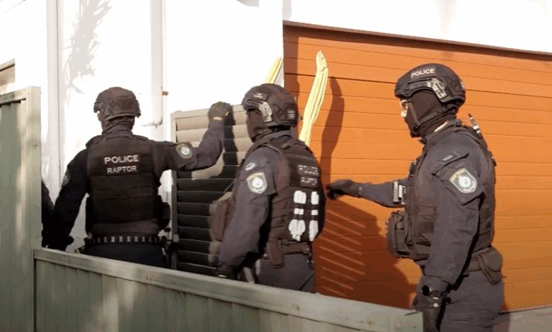 Raptor Squad officers executing search warrants at multiple properties – as part of a crackdown on violent crime.
